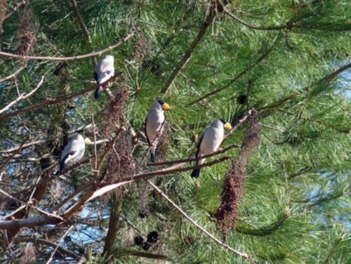 サクラの花の季節になると何処からともなくやって来るイカル. 繁殖前のこの時期はまだ群れで行動しています. ここ数日,家の前にあるヌルデノの樹の実(ドライ)を食べに4羽のイカルがやって来ています. 玄関の戸を開けると真正面に見えるので,最近はそ…