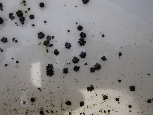 先日、作業場脇の外流しに置きっぱなしだった白いプラスチックの洗面器の中に小さな花がたくさん咲いているのを発見しました。 外流しに置いてあった洗面器の中に小さな花がたくさん沈んでいます。 何の花でしょうか? 実はこれはフクラスズメという大型の蛾…